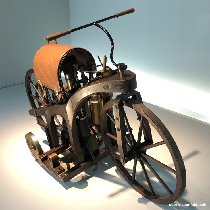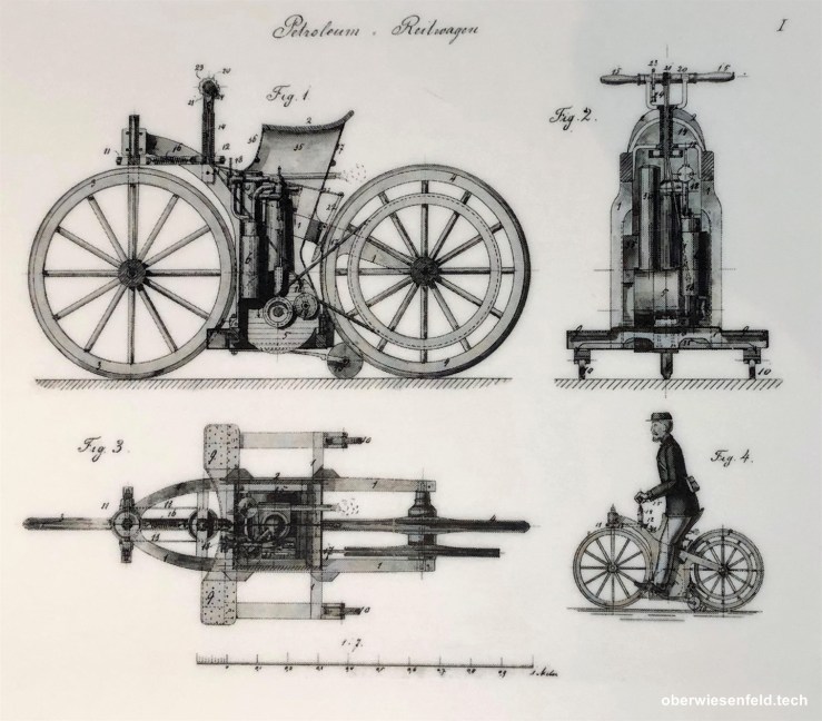 Der Daimler Reitwagen, oder Petroleum – Reitwagen wie er in den Konstruktionsskizzen bezeichnet wurde, wurde im Jahre 1885 von Gottlieb Daimler (1834 – 1900) und Wilhelm Maybach (1846 – 1926) aufgebaut.