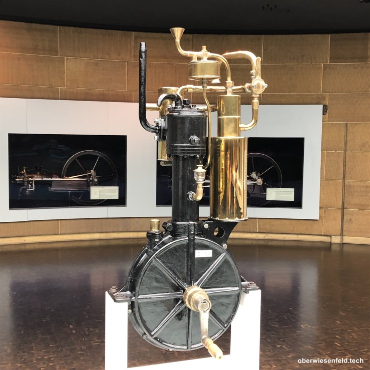 Dieser Motor wurde am 03.04.1885 als Patent angemeldet. Besondere Eigenschaften waren die kompakte Bauweise und die erreichte Drehzahl von 600 Umdrehungen pro Minute.