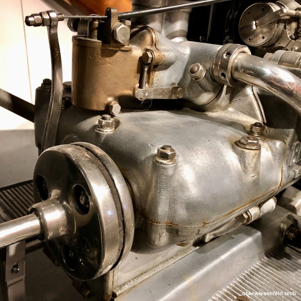 Die kompakte Motor- und Getriebeeinheit vgl. Knittel, S. Slabon R. (1992), Streblow,N (2023) hatte keine zusätzliche Primärkette zwischen Motor und Getriebe nötig. Das Getriebe wurde direkt an den Motor angeschraubt. Beim Vergleich mit anderen zeitgenössischen Modellen fällt zudem auf, dass keine außenliegenden Ölleitungen vorhanden waren.